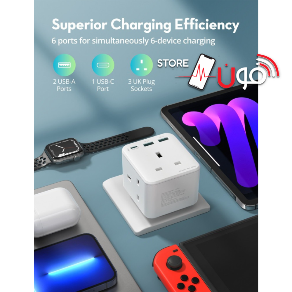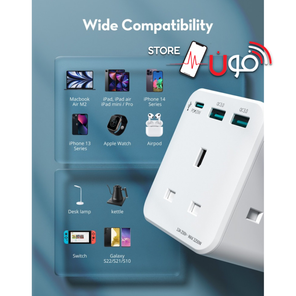 احصل على راحة البال والأداء العالي مع رأس الشاحن ذو 3 مخارج AC يتيح لك شحن ثلاثة أجهزة في وقت واحد بكفاءة عالية سواء كنت في المنزل أو في العمل أو حتى أثناء السفر فإن تصميمه المدمج يجعله رفيقًا مثاليًا لكل مكان و بفضل قوته الكبيرة يمكنك الاعتماد عليه لشحن أجهزتك بسرعة وأمان فائقين اجعل حياتك اليومية أسهل حيث يجمع بين الأداء القوي والتصميم الأنيق